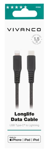 Vivanco Longlife USB-C/Lightning-kabel 1,5 m svart