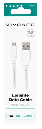 Vivanco Micro USB-kabel med lång livslängd 2.5m Vit