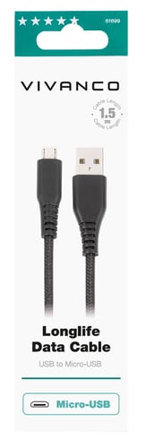 Vivanco Micro USB-kabel med lång livslängd 1.5m Svart