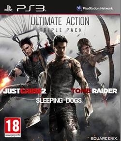 BeskrivningJust Cause 2Med mer stunts, fordon och vapen än någonsin tidigare och en otrolig, omgjord gripkrok, återvänder Rico till handling i Panau, en otroligt detaljerad och omfattande 1000 kvadratkilometersvärld fylld av olika klimat och ultrarealistiska vädereffekter. Hoppa från ditt plan och fallskärmshoppa från 10000 for ner till en tropisk djungel, kör över en torr öken i en sandloppa eller klättra upp ett snöigt berg i en 4x4. Den stora, öppna och unika gameplayen är tillbaka och ger dig än en gång fullständig frihet att utforska Panaus värld och ta itu med dina uppdrag hur du vill.Sleeping DogsVälkommen till Hongkong, en livlig neonstad, vars exotiska platser och upptagna gator döljer en av de mest mäktiga och farliga kriminella organisationerna i världen: the Triads. Du spelar rollen som Wei Shen, en hemlig polis som försöker störta the Triads inifrån. Du måste visa dig värdig när du kämpar dig upp i organisationen, deltar i brutala brottsliga aktiviteter utan att avslöja dig själv. Sliten mellan din lojalitet till polisbrickan och den kriminella hederskodexen, kommer du att riskera allt när linjerna mellan sanning, lojalitet och rättvisa blir permanent suddiga.Tomb RaiderTomb Raider är en nytolkning av den klassiska actionäventyrsserien och kommer att utforska den ikoniska karaktärens intensiva ursprungshistoria. I spelet kommer Lara Croft att omvandlas från en rädd ung kvinna på sitt första äventyr till en härdad överlevande. Beväpnad med hennes instinkter och hennes medfödda förmåga att anstränga sig bortom mänsklig uthållighets gränser, måste Lara slåss, utforska och använda sin intelligens för att avslöja den bortglömda öns mörka historia och fly dess obevekliga grepp. Med spännande filmiska uppsättningar, intuitiv tredjepersonsstrid och stora nivåer för Lara att navigera och utforska, är syftet med Tomb Raider att återuppfinna actiongenren och återta fans fantasi med den ursprungliga kvinnliga tv-spelshjälten.Specifikationer:Vikt:1,2 KGPEGI / Rec. Användnings ålder:18Konsoltyp:PlayStation 3