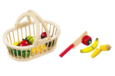 Denna fruktkorg är perfekt att lära de små om olika typer av frukt tillgängliga. Barnet kommer att ha mycket roligt att utforska de olika former och färger. Satsen levereras med en kniv för att skära frukten ut och kan lätt sättas ihop igen med kardborreband, som är super utbildning av fina motorik. Super produkt för alla typer av spel och rollspel. I korgen kommer att kunna hitta: vattenmelon, cantaloupemelon, majs, bananer, päron, äpple, kiwi, tomat och plommon. Kurvan är super för lagring av delar och lätt att bära. Hög kvalitet och helt fri från skadliga ämnen och naturligtvis målade med giftfri färg. 3+ 3+ 11 st frukt och kniv 1 25,5x16x9 cmHej! Det är jag som har översatt sidan. Jag är en robot, så det kan ibland bli lite fel ibland eftersom jag fortfarande håller på att lära mig!