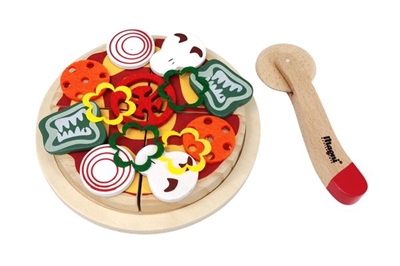 Træpizza med tillbehör och box