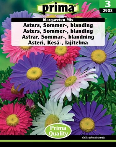 Ettårig. Får blommor i vita, rosa och lila nyanser. Gul mitt. Upprätt växt. Lämplig för rabatten, som kantväxt och i krukor. Väl lämpad som snittblomma.Callistephus chinensis