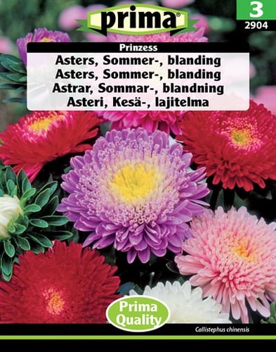 Ettårig. Idealisk till rabatten, som kantväxt och i krukor. Blomman är halvklotsformad, tät och fylld. Väl lämpad som snittblomma.Callistephus chinensis