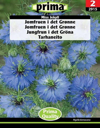 Ettårig. Används i rabatt. Bra snittblomma. Efter blomning bildas dekorativa frökapslar som används som evighetsblommor.Nigella damascena