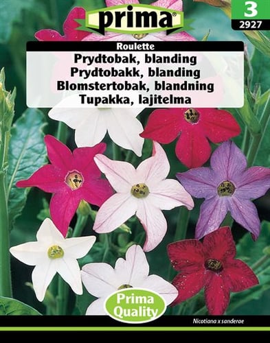 Ettårig. Välkänd sommarblomma. Blommar villigt hela sommaren i vackra färger. Mycket robust planta. Kompakt växtsätt. Lämplig att ha i rabatten och i krukor.Nicotiana x sanderae