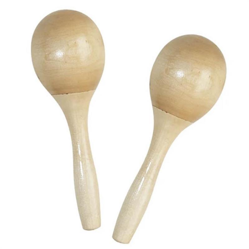 Trämaracas som är ett enkelt och roligt instrument att spela. 14 cm långa.