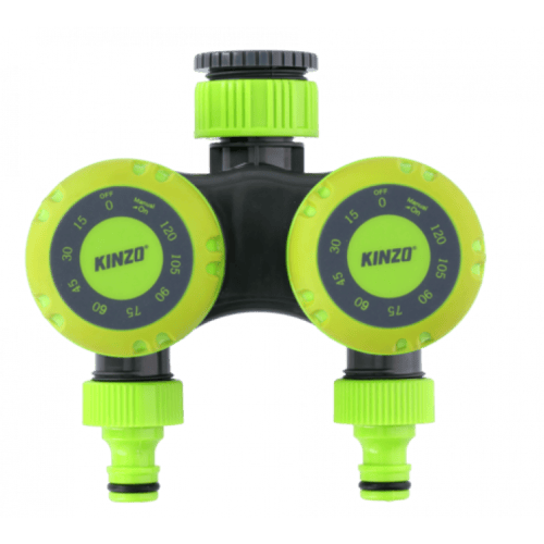 Använd den här mekaniska dubbla bevattningstimern från Kinzo Garden för att vattna din gräsmatta under en bestämd tidsperiod. Kan också användas för att regelbundet fylla på vatten till dina växter eller växthusgrönsaker. Du ansluter den till kranen med en koppling och ansluter 2 vattenslangar till timern. Har låsknappar för en vattentät anslutning. Klockan kan ställas in för 15, 30, 45, 60, 75, 90, 105 och 120 minuter oberoende av varandra. Allt du behöver göra är att vrida på rattarna. Resten är mer eller mindre uppenbart. När timern är avstängd stänger den passagen för vatten.Specifikationer:Färg:GrönLängd:14 cmHöjd:8 cmBredd:14 cm