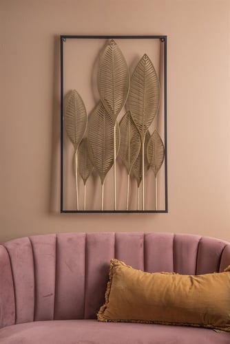 - Storlek: 89 x 53 x 1,3cm- Material: Metall- Färg: MessingWhite wall? Present Time has some really nice wall art pieces that can give your wall a beautiful look. This nature inspired, trendy wall decoration gives a white wall an artistic touch in no time. The artwork, made of iron, impresses with beautiful leaves in gold. Pt's wall decorations are eye-catchers that match any interior style.