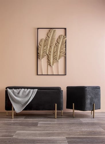 - Storlek: 89 x 53 x 1,3cm- Material: Metall- Färg: MessingWhite wall? Present Time has some really nice wall art pieces that can give your wall a beautiful look. This nature inspired, trendy wall decoration gives a white wall an artistic touch in no time. The artwork, made of iron, impresses with beautiful feathers in gold. Pt's wall decorations are eye-catchers that match any interior style.